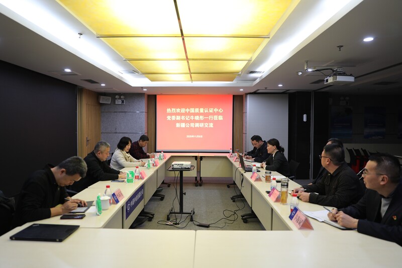 11月6日至7日,中国质量认证中心(以下简称CQC)党委副书记牛晓彤一行赴新疆开展调研交流。期间,调研组拜会了自治区工信厅党组成员、副厅长程多福并进行座谈交流,还前往中国中检新疆公司调研,听取工作汇报。